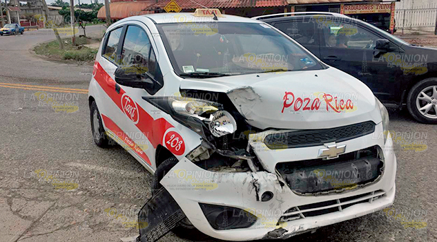 Cuantiosos daños materiales termino la unidad de alquiler marcada con el número 203 de esta ciudad, luego de que el conductor de una camioneta de Pemex le cortara la circulación.