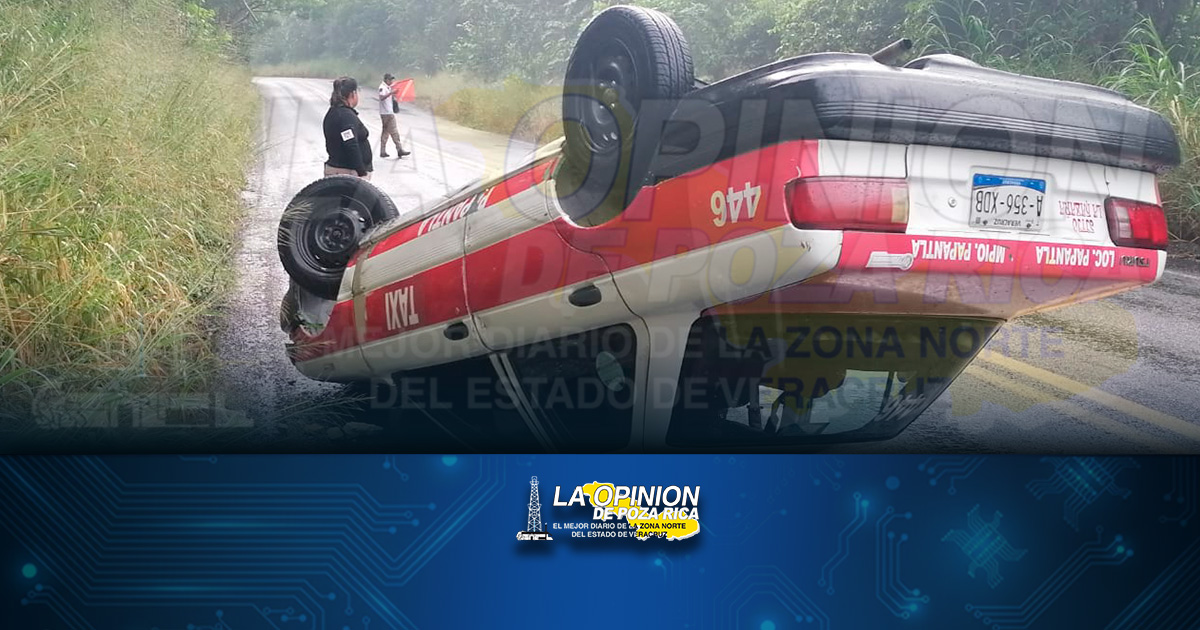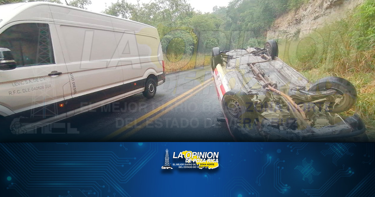 PAPANTLA, VER. – Daños materiales por miles de pesos fue el saldo que dejó un aparatoso accidente registrado la tarde de este lunes sobre la carretera Papantla – Poza Rica, cuando un vehículo de alquiler volcó de forma aparatosa.