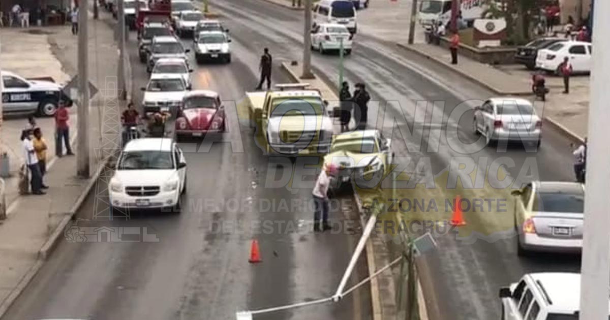 Huejutla, Hgo.- Un trabajador del transporte público en la modalidad de taxi derribó un poste de alumbrado público y posteriormente se dio a la fuga con rumbo desconocido con la finalidad de evitar ser detenido por la policía.
