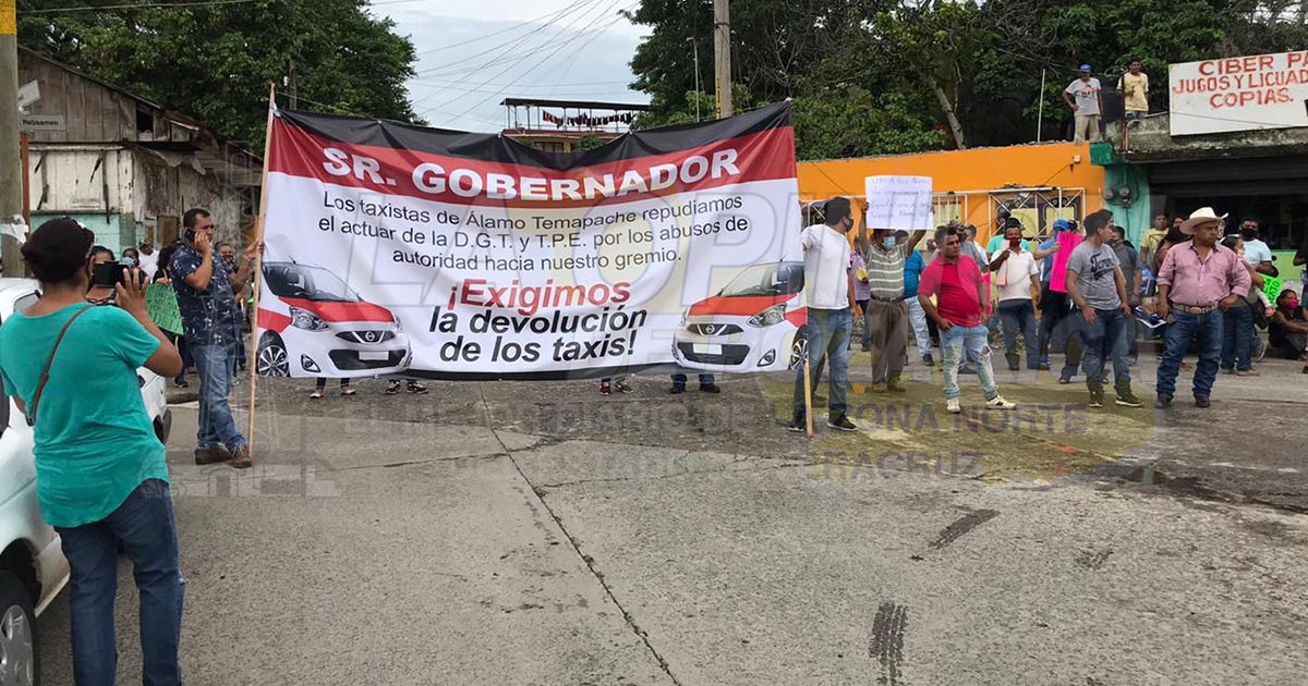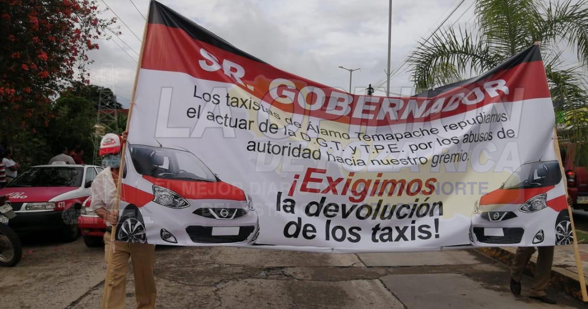 Álamo, Ver.- A varios días de que se llevará un operativo por parte de la Delegación Estatal de Transporte Público en donde fueran retiradas y retenidas varias unidades de alquiler, los más de setecientos taxistas del municipio se manifestaron a las afueras de la fiscalía para exigir al gobierno del estado una solución a esta problemática.