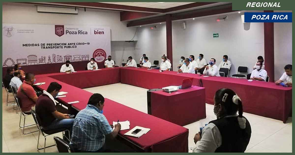 Poza Rica, Ver.- Considerando la entrada en vigor de la Fase 3 de la Contingencia Sanitaria, y siendo el transporte un factor determinante para la movilidad y traslado más seguro de los ciudadanos de nuestra ciudad y municipios circunvecinos, el Gobierno que encabeza Francisco Javier Velázquez Vallejo con el respaldo de representantes de la Comisión Federal para la Protección contra Riesgos Sanitarios COFEPRIS y autoridades de Transporte Público, sostuvieron una reunión de trabajo con representantes de sindicatos de taxistas de Poza Rica, Tihuatlán y Coatzintla, para reforzar las medidas de prevención y evitar los riesgos de contagio entre la población.