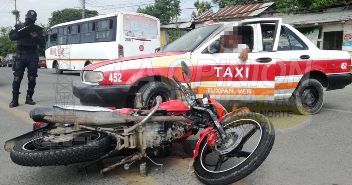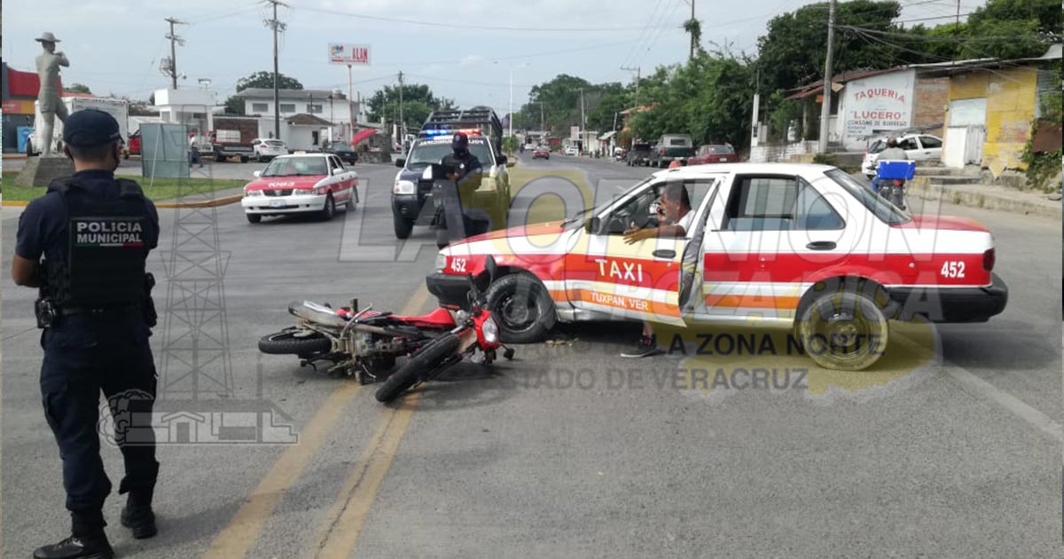 Tuxpan, Ver.- par de accidentes en donde se vieron involucrados trabajadores del volante y motociclistas dejaron como saldo cuantiosos daños materiales y dos personas lastimadas, en ambos casos autoridades de vialidad tomaron conocimiento.