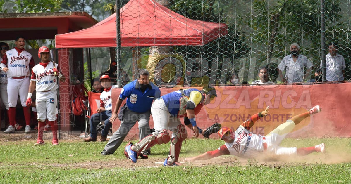 Los Diablos Rojos empezaron fuerte al anotar 4 carreras en la primera entrada. Ya con dos outs Rodrigo Hernández pegó doblete por la pradera central, por el titubeo del jardinero avanzó hasta la tercera y en el tiro a dicha almohadilla la pelota no fue atrapada por el antesalista y el ampáyer de bases Prisciliano Ramírez le concedió la otra base, Rodrigo se llevó por delante a Alejandro González.
