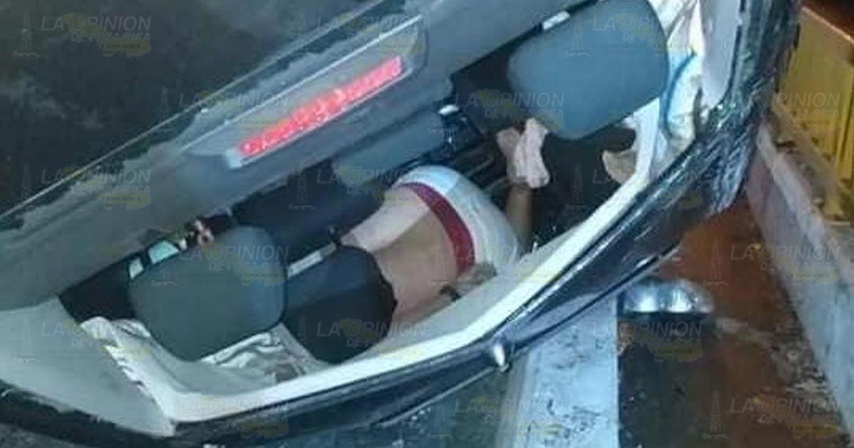 En el accidente se vieron involucrados un automóvil Chevrolet Cruze, color negro, el cual era conducido por una persona del sexo masculino, el cual quedo sin vida en el interior del vehículo que se encontraba volcado con las llantas hacia arriba recargado en el barandal metálico.