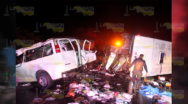 Un aparatoso accidente automovilístico se registró la madrugada de este sábado en la carretera federal 180 México – Tuxpan, a la altura de la comunidad Agua Fría del estado de Puebla, donde una familia completa dedicada al comercio, perdió la vida al chocar contra un autobús, donde más de 15 pasajeros resultaron lesionados y fueron  llevados a diferentes hospitales de Venustiano Carranza y la ciudad de Poza Rica.