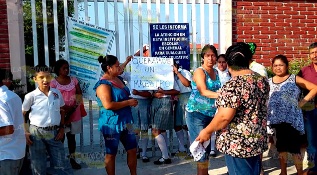 ÁLAMO, VER.- Desesperados porque el ciclo escolar se encuentra en su recta final y los alumnos del tercer grado prácticamente perdieron ya el año, madres y padres de familia tomaron desde esta mañana la escuela telesecundaria “Rosario Castellanos”, de la localidad Agua Nacida, para exigir la reposición del maestro que hace falta.