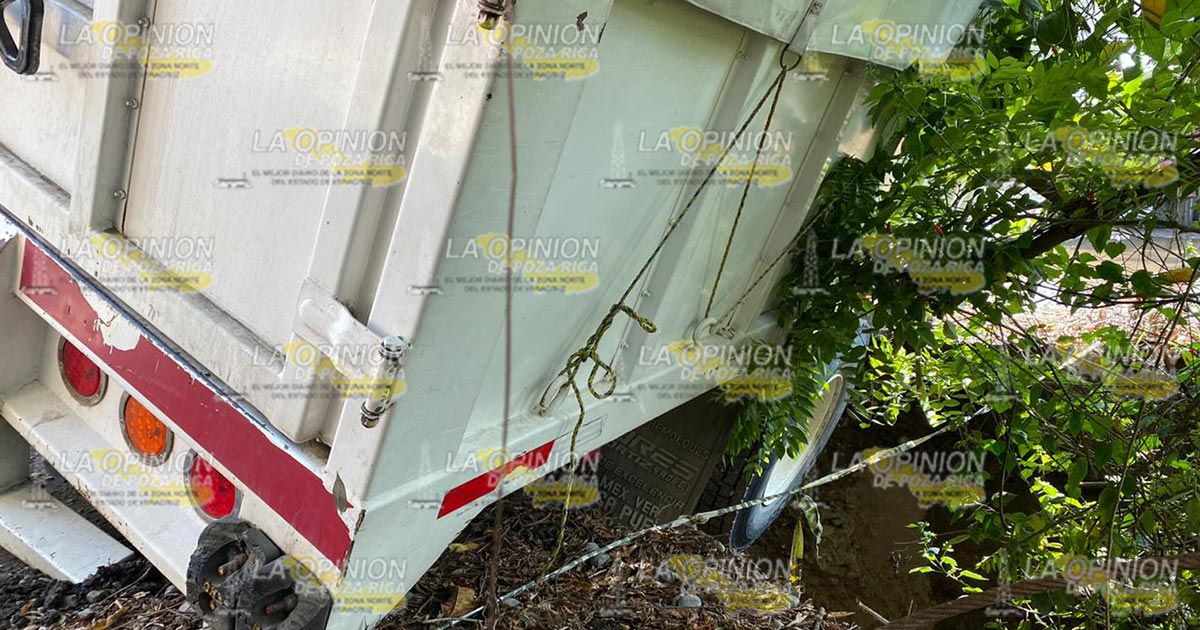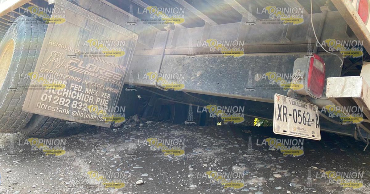 Por fortuna el peso no venció y la unidad quedó de lado y luego de unas horas con ayuda de otra unidad el camión salió del hueco y pudo continuar con su camino. Es importante mencionar que no hubo heridos.