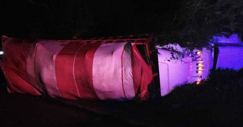 Cabe destacar que el camión volcado permaneció tirado toda la noche, pues durante la mañana del sábado aún se encontraba en el sitio del percance.