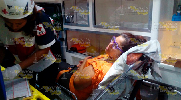 Una persona lesionada del sexo femenino, resultó con golpes severos y dolores en la columna luego de que el taxi 404 en el que viajaba, fuera golpeado en varias ocasiones por un camión tipo Torton cuando éste se encontraba esperando la luz verde del semáforo ubicado en la carretera Poza Rica a María Andrea a la altura del ATCP en Coatzintla.