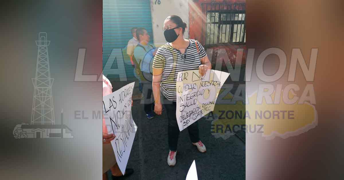 Xalapa, Ver.- Trabajadores de la Secretaría de Educación de Veracruz (SEV) se manifestaron afuera de la delegación en la cabecera de Coatepec para reprochar la poca sensibilidad de las autoridades por obligarles a trabajar.