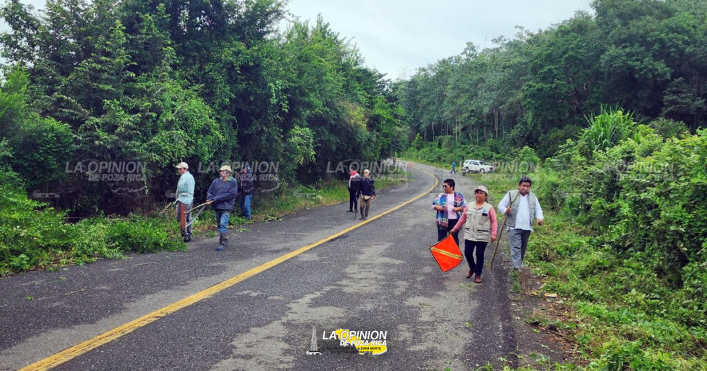 Castillo de Teayo, Ver.- Pobladores de la comunidad La Guadalupe realizaron trabajos de libranza en las orillas de la carretera que los comunica con la cabecera municipal, pues en algunos tramos la vía se había hecho angosta por invasión del monte.
