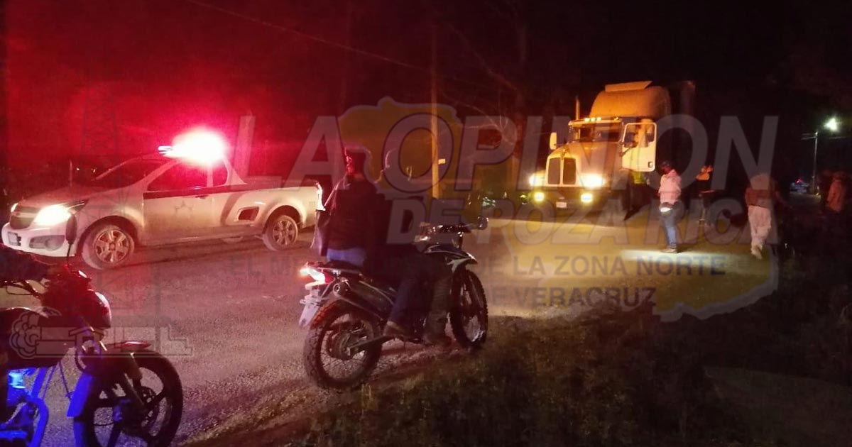 Álamo, Ver. – Un trágico accidente se presentó la noche de este martes en la carretera Álamo-Limonar a la altura de la localidad de Agua Nacida, cuando el conductor de una motocicleta intentó ganarle el paso a un vehículo pesado, el cual terminó arrollándolos.