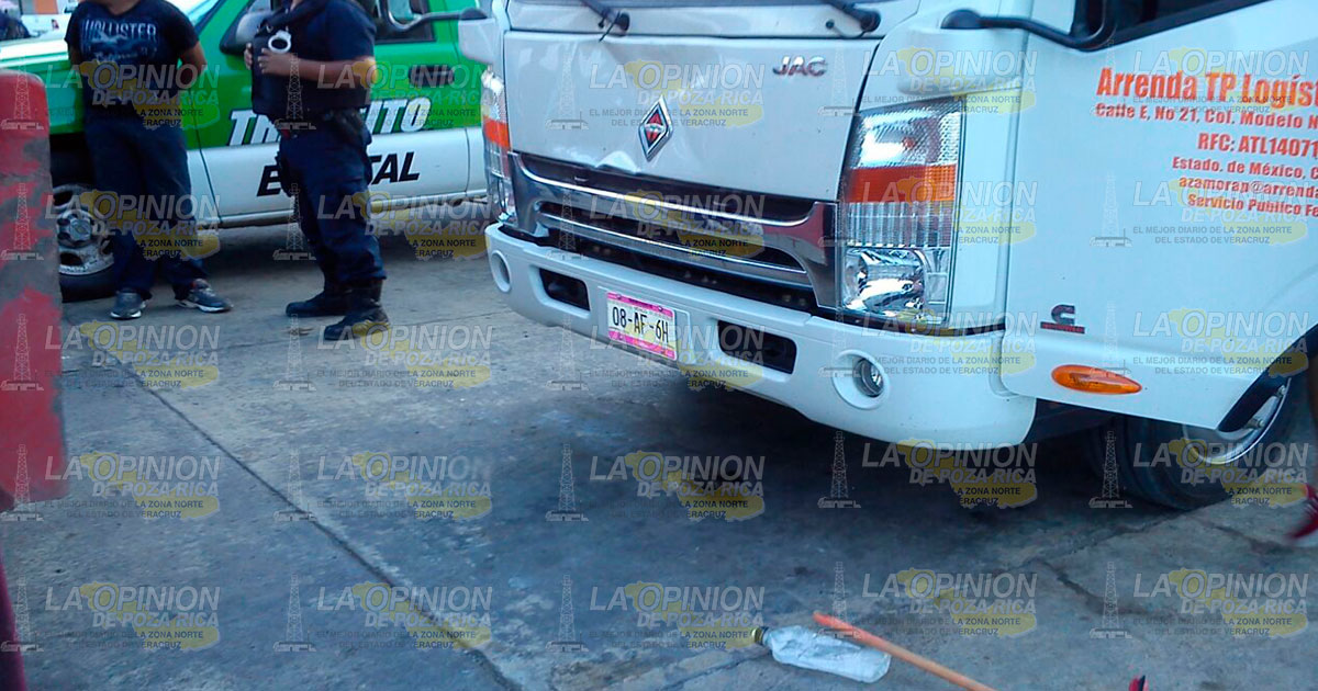 ÁLAMO, VER.- Mientras realizaba su trabajo sobre una unidad estacionada frente a la gasolinera de la colonia Unidad y Trabajo, un joven limpiador de parabrisas quedó prensado entre dicho vehículo y un enorme tráiler que era echado de reversa.