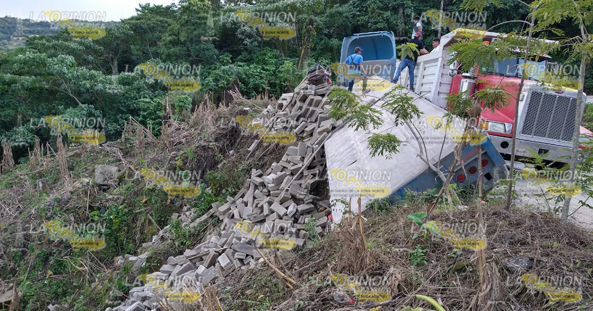 De acuerdo a lo sucedido se logró saber que sobre la carretera en mención sujetos no identificados dejaron tirado calidra sobre el concreto de la carretera, esto al mojarse provocó que la unidad al pasar por ese lugar patinara y el peso hizo que retrocediera, hasta que uno de los neumáticos traseros se saliera del camino y quedó colgando; todo su material quedó en el monte.