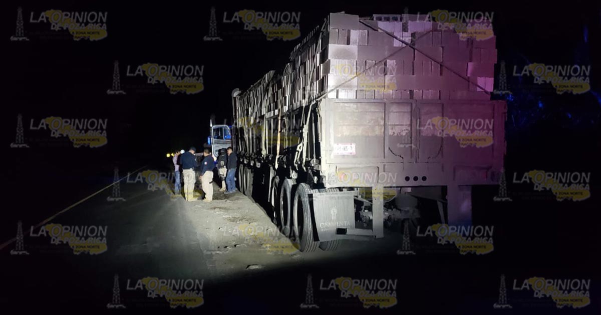 La unidad que conducía es un tráiler de la marca FREIGHTLINER color blanco, modelo 2003, Placas 896-WS-7, México D.F. Razón social González Jiménez, transporta Block con destino a la ciudad de Huejutla Hidalgo proveniente de Perote Veracruz.