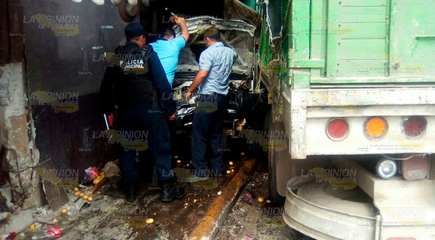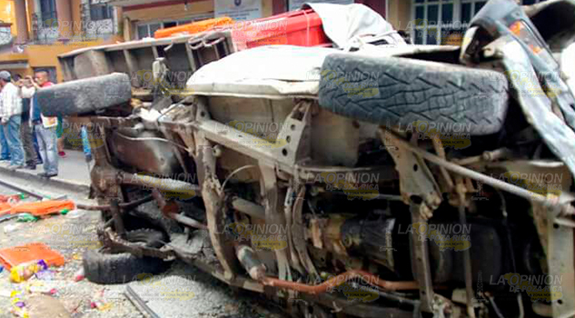 Atzalan, ver.- Aparatoso accidente se registró en la zona centro de esta población cuando un tráiler circulaba en un tramo descendente y en esos instantes la pesada unidad se quedó sin frenos.