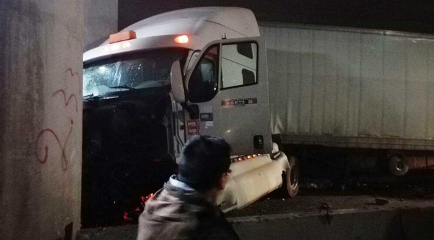 Después de que el tráiler impactó a los otros vehículos, éste terminó por chocar en un muro de contención cerca de una caseta de cobro de Chalco.