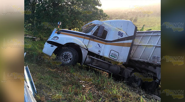 Isidro Domínguez Escorcia, de 33 años, originario y con domicilio en el estado de Puebla, es quien manejaba la pesada unidad destacando que se desplazaba por la autopista en dirección a la de graneleras de este puerto pero a la altura del kilómetro mencionado asegura que un coche se le atravesó y por eso perdió el control chocando con la barra metálica de contención y proyectándose contra unos árboles que detuvieron su recorrido.