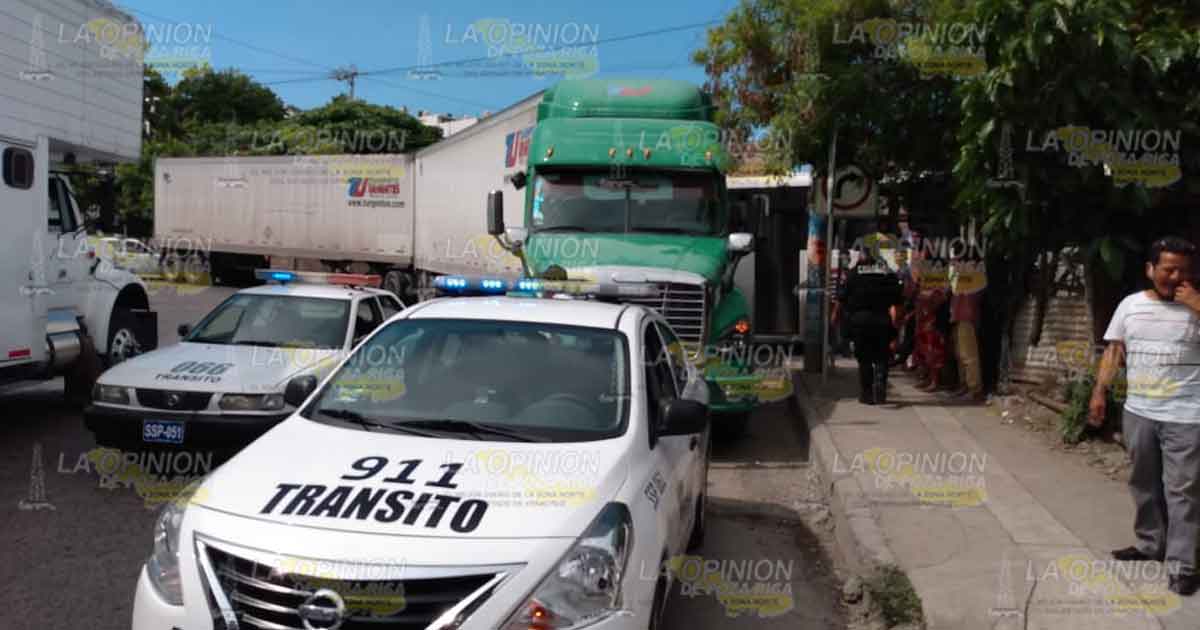 Tuxpan, Ver. – Trailero que era perseguido por patrulleros de Tránsito Municipal luego de que no querer detenerse para ser sancionado de forma administrativa chocó contra la unidad de la dependencia de vialidad por fortuna no hubo lesionados y con apoyo de elementos policíacos pudieron detenerlo.