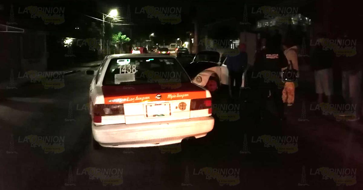 En el lugar el colisionaron un automóvil Volkswagen Sedán, color blanco, con placas de circulación YJY 5435 del Estado, manejado por Marco Antonio L.C., vecino de la dirección mencionada y en taxi número económico 1438, guiado por Roberto H.S., con domicilio en la comunidad de Juana Moza, perteneciente a este municipio.