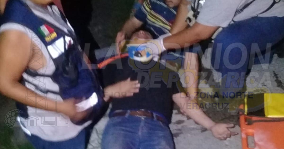 Cerro Azul, Ver.- Tres personas que viajaban como pasajeros en un taxi resultaron lesionados en la noche del sábado, luego de que el vehículo en el que viajaban sobre la carretera federal Tuxpan-Tampico fuera impactado por una camioneta, y el vehículo de alquiler se fue a un barranco, complicándose las maniobras del personal de emergencia para rescatar a los heridos y trasladarlos al hospital para que recibieran la atención médica requerida.