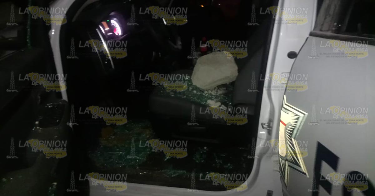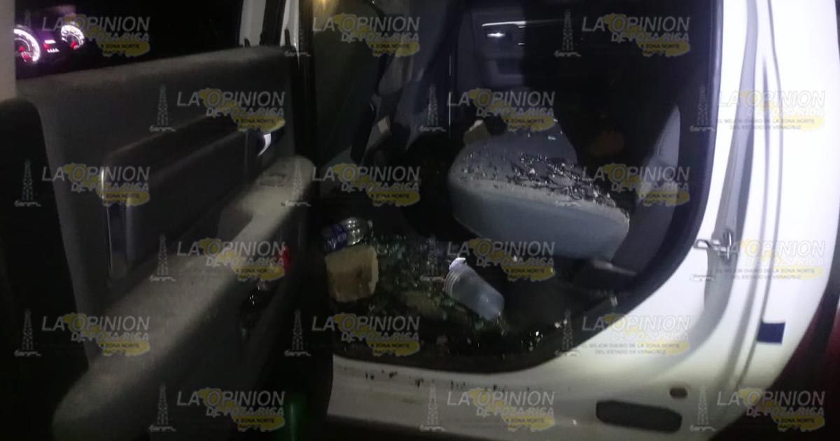 Los quejosos se tornaron agresivos contra los oficiales destrozando el parabrisas y los cristales de las puertas de la patrulla número 1319, con trozos y rocas además de quemar los asientos.