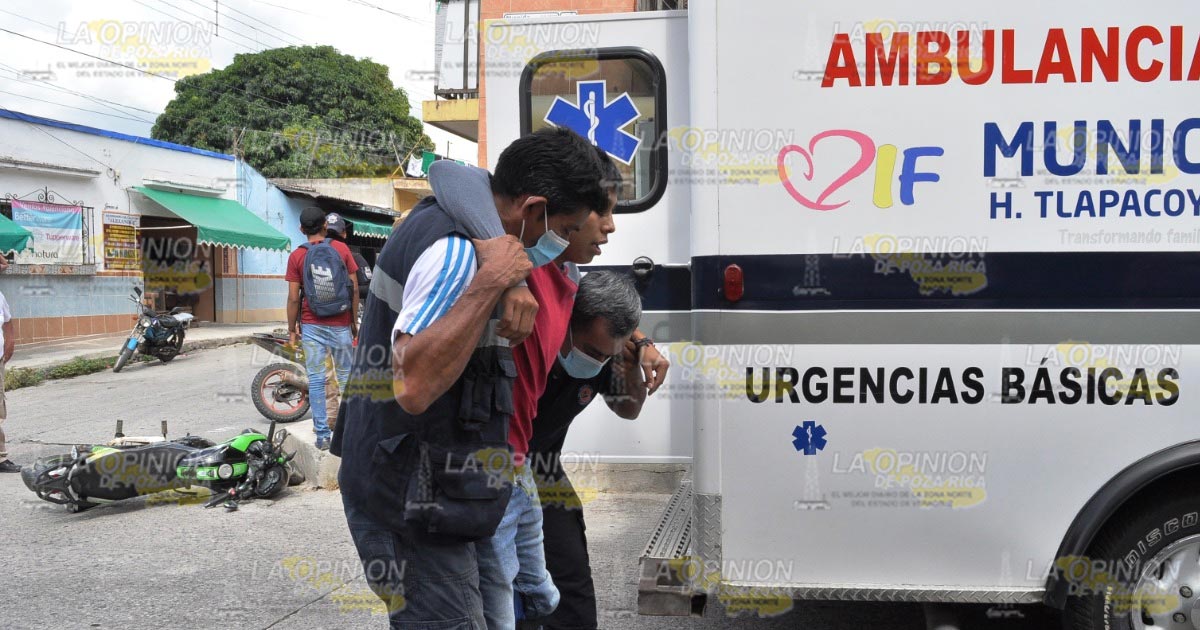 Tlapacoyan, Ver. – Una mujer enfermera que viajaba a bordo de una motocicleta en compañía de un masculino, ambos fueron embestidos por otro motociclista que viajaba a exceso de velocidad y al volarse un tope, se fue a estrellar con la pareja que resulto lastimada al momento del impacto.