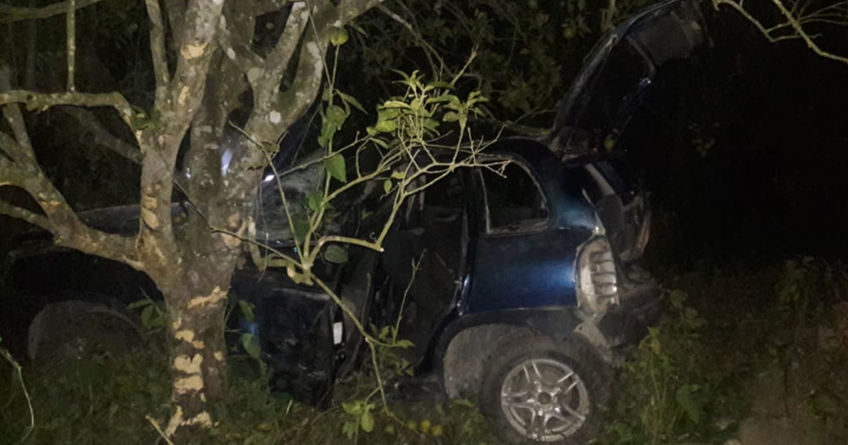 Durante el viaje, sin embargo, presuntamente debido a su estado etílico y a la velocidad inmoderada, el conductor de la unidad perdió el control, se salió violentamente del camino y se estrelló fuertemente contra un árbol de naranjo.