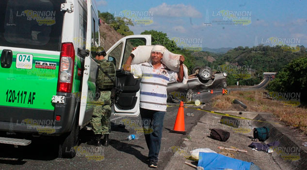 Horrible muerte encontró un albañil en aparatosa volcadura de una camioneta Ford F-150 en la que viajaba sobre la autopista Totomoxtle, con dirección a Gutiérrez Zamora, donde tres personas más resultaron lesionadas, las cuales que fueron auxiliados por paramédicos de Capufe, mismas que se quedaron en el lugar de los hechos.