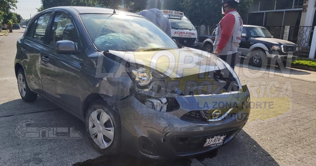 Poza Rica, Ver. – Una mujer lesionada fue el saldo de un aparatoso accidente entre dos automóviles particulares.