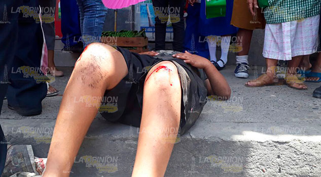Unidad 326 de TUPR arrolla a un niño en la esquina de la avenida Independencia y bulevar Ruiz Cortines. El menor presenta probable fractura en ambas piernas.