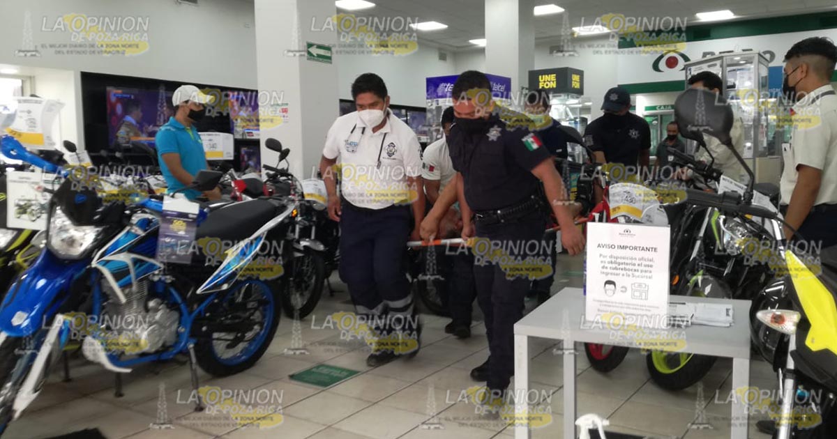 Tuxpan, Ver.- Pensionado que acudió a la tienda Salinas&Rocha de esta ciudad sufrió un infarto al encontrarse en la zona de cajas para hacer un abono a su cuenta; policías municipales se movilizaron y paramédicos de Cruz Ámbar lo trasladaron a la clínica del IMSS.