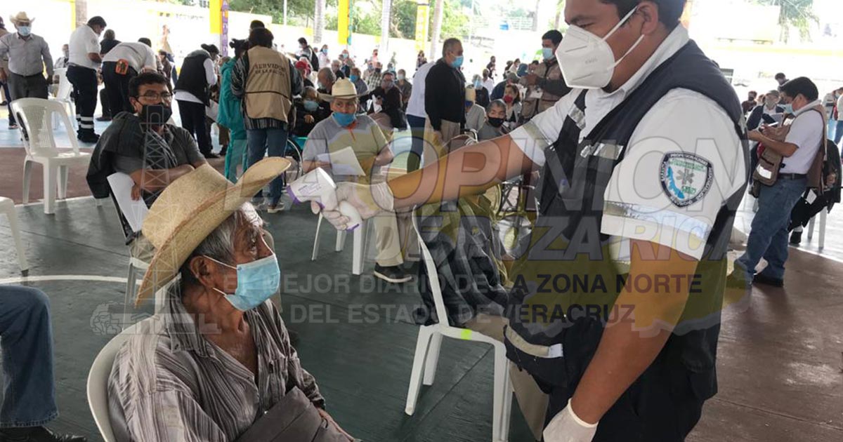 Tihuatlán, Ver.- Como estaba previsto, este lunes inició la intensa jornada de vacunación de adultos mayores contra el Covid-19 en la cabecera municipal de Tihuatlán, donde la meta inicial es inmunizar a un total de 2 mil personas en dos días, indicó Emilio Olvera Andrade, delegado regional de Desarrollo Social.
