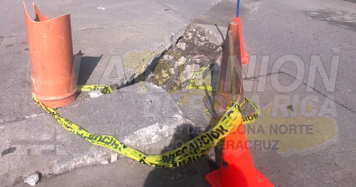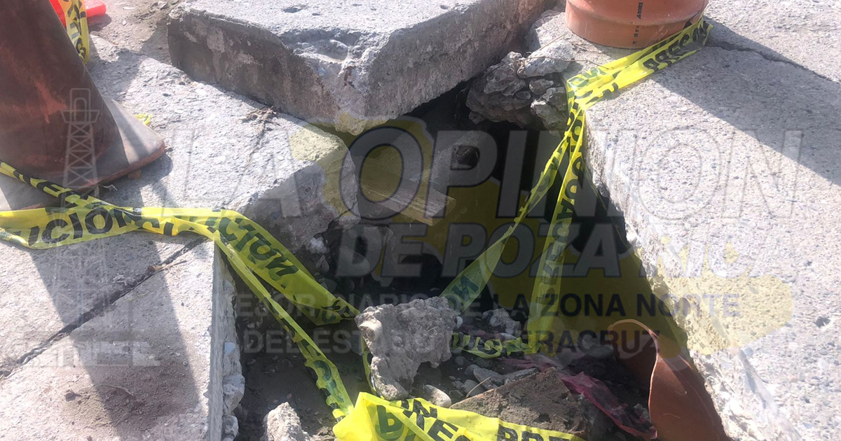 Poza Rica, Ver.- Después de que se llevaran a cabo los trabajos de construcción de drenaje para conocido tienda de la ciudad el pavimento de la calle Chapultepec, de la colonia Manuel Ávila Camacho, tronó y ahora se socava poco a poco.