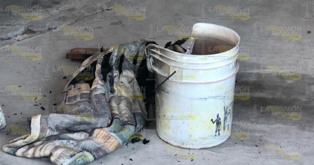 Minutos después arribó personal de Protección Civil, quienes sacaron del interior una cubeta de plástico que mostraba rastros del incendio y una cobija quemada que muestra el peligro en que viven estas personas.