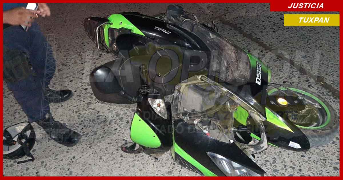 Tuxpan, Ver.- Joven motociclista que se encontraba alcoholizado y que en apariencia se desplazaba hacia su casa a exceso de velocidad se derrapó de manera violenta y sufrió un aparatoso accidente que le provocó heridas en el rostro y a cabeza.