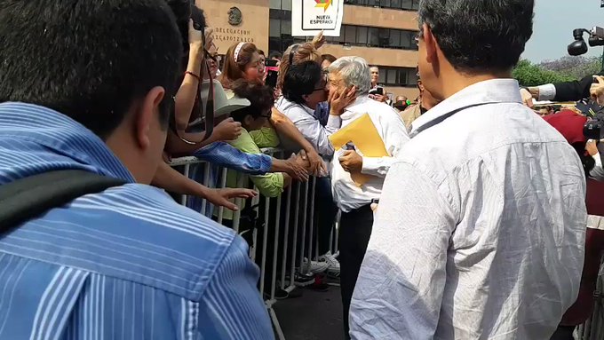 En el video se muestra como el candidato por la coalición «Juntos haremos más» va saludando a las personas que se encuentran en la valla, cuando de repente una mujer lo abraza y le da un beso en la boca, las personas que se percataron aplaudieron el acto y AMLO continúo muy sonriente su paso.