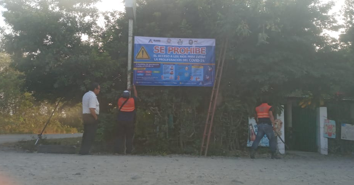Álamo, Ver. – Por enésima ocasión, las autoridades municipales llamaron a la ciudadanía alamense a conducirse con responsabilidad y consciencia ante la amenaza del coronavirus, toda vez que pese a los avisos de advertencia colocados en los principales accesos a los ríos, muchas personas continúan arribando a los afluentes en franco desafío al Covid-19.