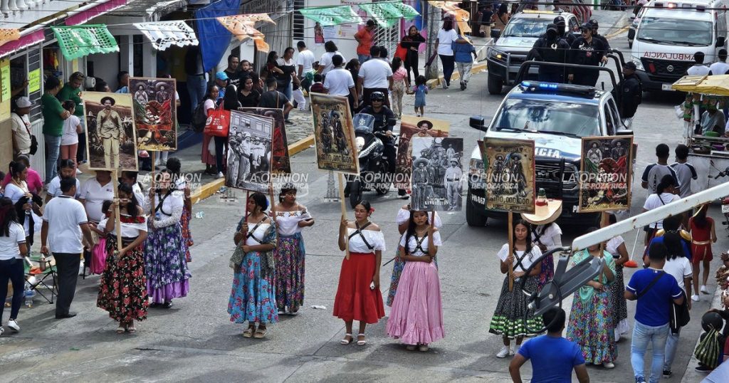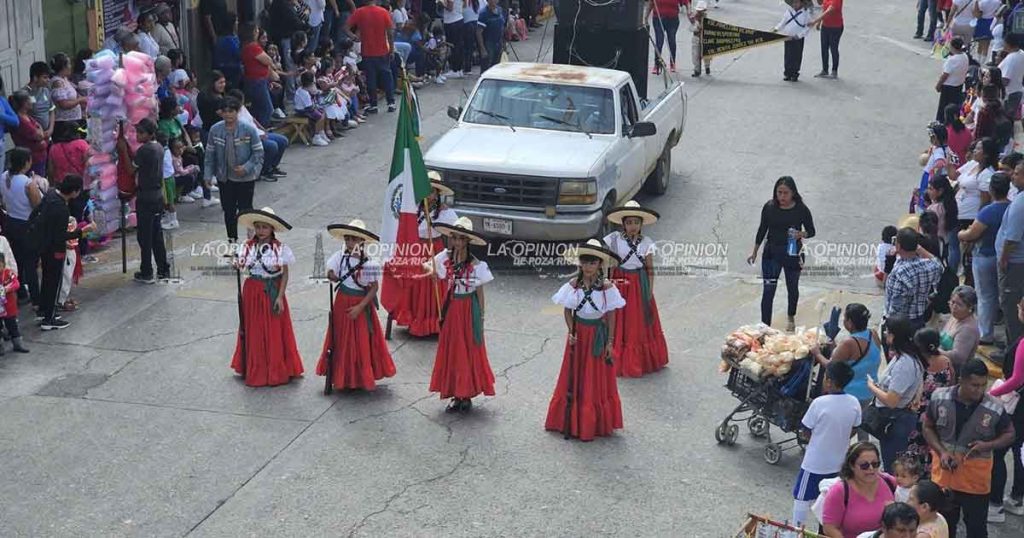 Tihuatlán, Ver.- Las principales calles de esta villa se llenaron de colorido y bullicio, al escenificarse un vistoso desfile para conmemorar el 114 aniversario del inicio de la Revolución Mexicana.