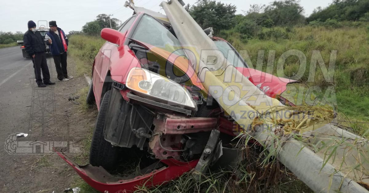 Tuxpan, Ver. – Joven empleada de la empresa SIICA quedó viva de puro milagro luego de estrellar el automóvil que manejaba con la barra metálica de contención del libramiento Portuario, de esta localidad; autoridades tomaron conocimiento.
