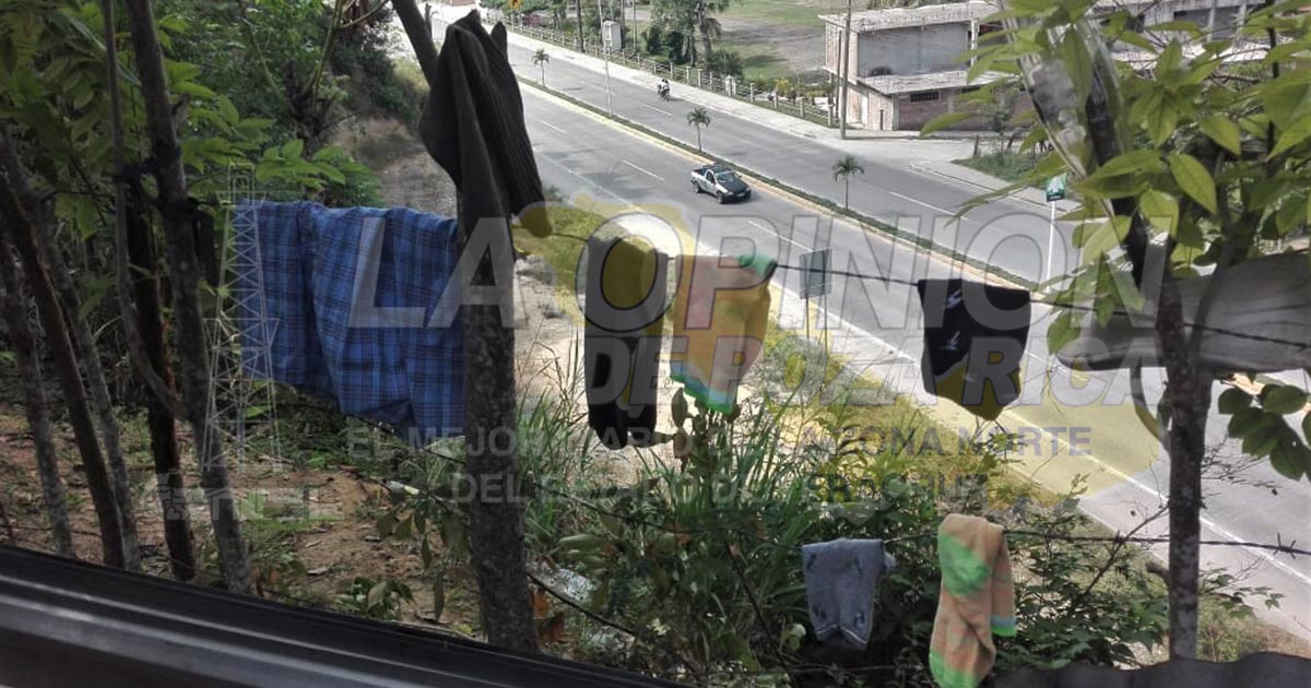 Tuxpan, Ver.- Sin que Protección Civil se dé por enterado, cinco familias viven al filo de un barranco, resultado del corte de un cerro ubicado en la colonia El Retiro, a un costado del Libramiento Adolfo López Mateos.