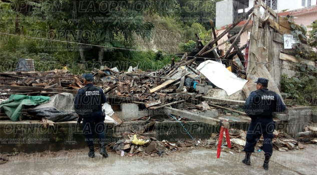 En Papantla, vetusta vivienda se viene abajo por las lluvias. La casa, propiedad del señor Vicente Velasco de Rojas, tiene más de 100 años de antigüedad. Está ubicada en la calle Miguel Negrete, en el populoso Barrio del Zapote. Afortunadamente no hay víctimas que lamentar.