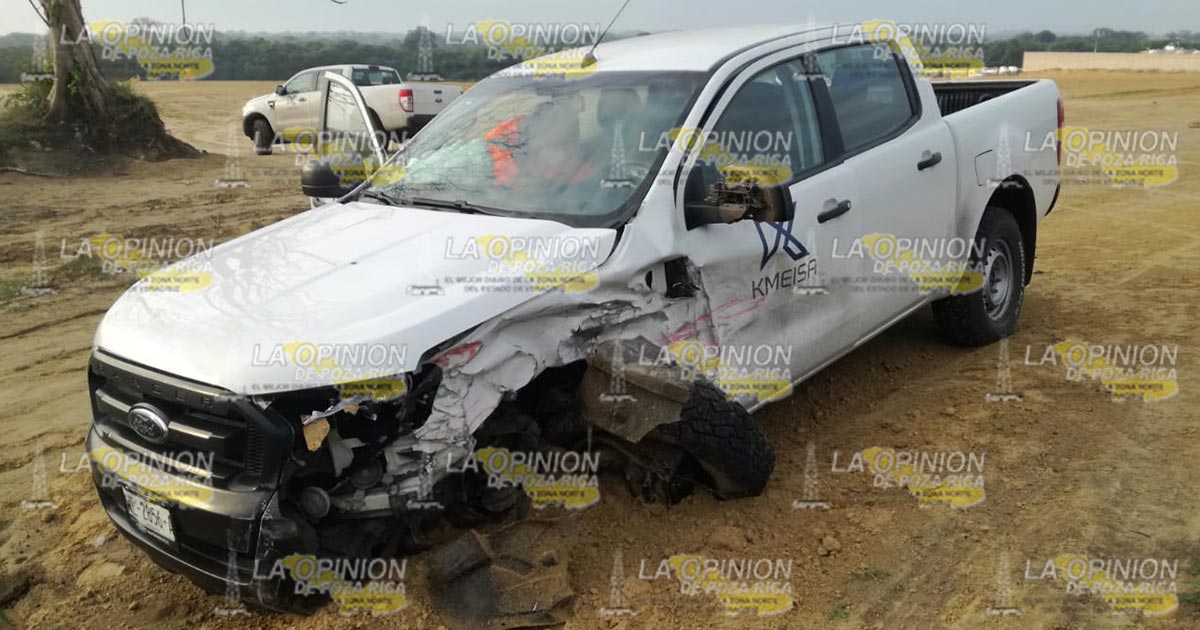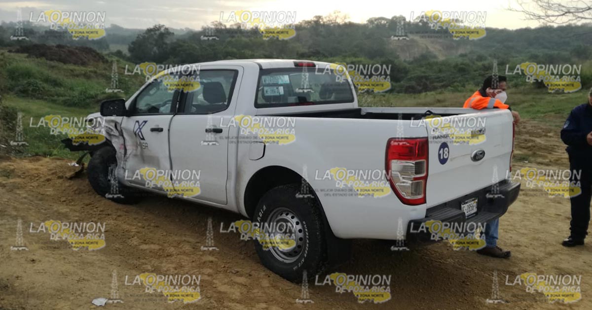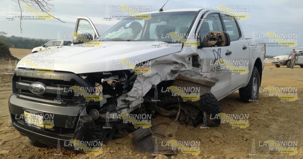 En el lugar uniformados hallaron colisionados a una Ford Ranger, blanco, propiedad de la empresa KMEIZA, con número económico 18, con placas de circulación WE2856A del Estado, conducido por Fernando Ochoa Zamudio, domiciliado en la colonia La Calzada, de este puerto.