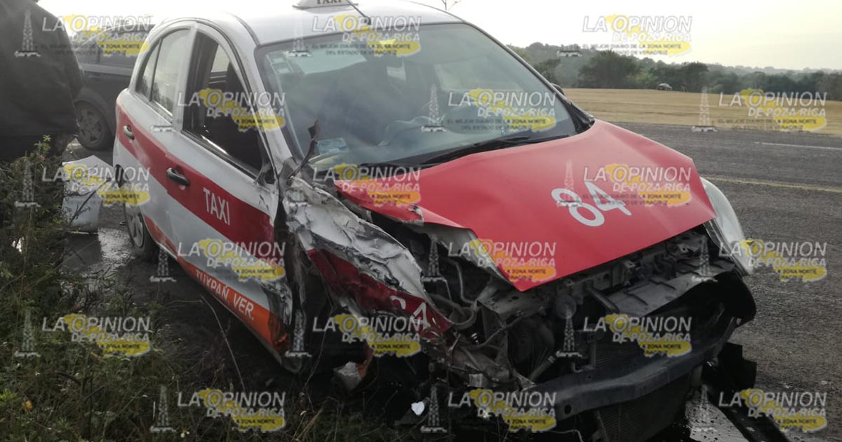 Tuxpan, Ver.- Taxista resultó milagrosamente ileso luego de estrellarse de frente con una camioneta por fortuna tampoco hubo víctimas que lamentar aunque los vehículos quedaron son elevados daños materiales.
