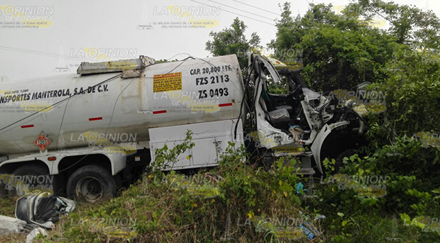 SAN RAFAEL, VER.- Al fondo de un barranco terminó una pipa, luego de que su operador presuntamente se quedará dormido al volante, por lo que perdió el control del volante y se salió de carretera, por lo que tuvo que ser auxiliado por personal de Cruz Roja, quienes lo trasladaron al Hospital Civil para su atención médica.