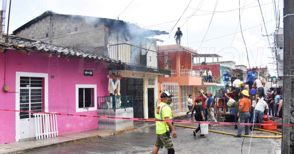 Tlapacoyan, Ver.- Alrededor del mediodía se registró una alarma por incendio de una vivienda marcada con el número 251 que se localiza sobre calle Serdán a la altura de la Cruz Verde, lugar en donde vecinos se llevan el susto de su vida al notar una densa y espesa nube gris de humo, debido que la casa estaba cubierta en llamas.