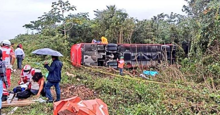Vuelca autobús en la carretera Mérida-Cancún