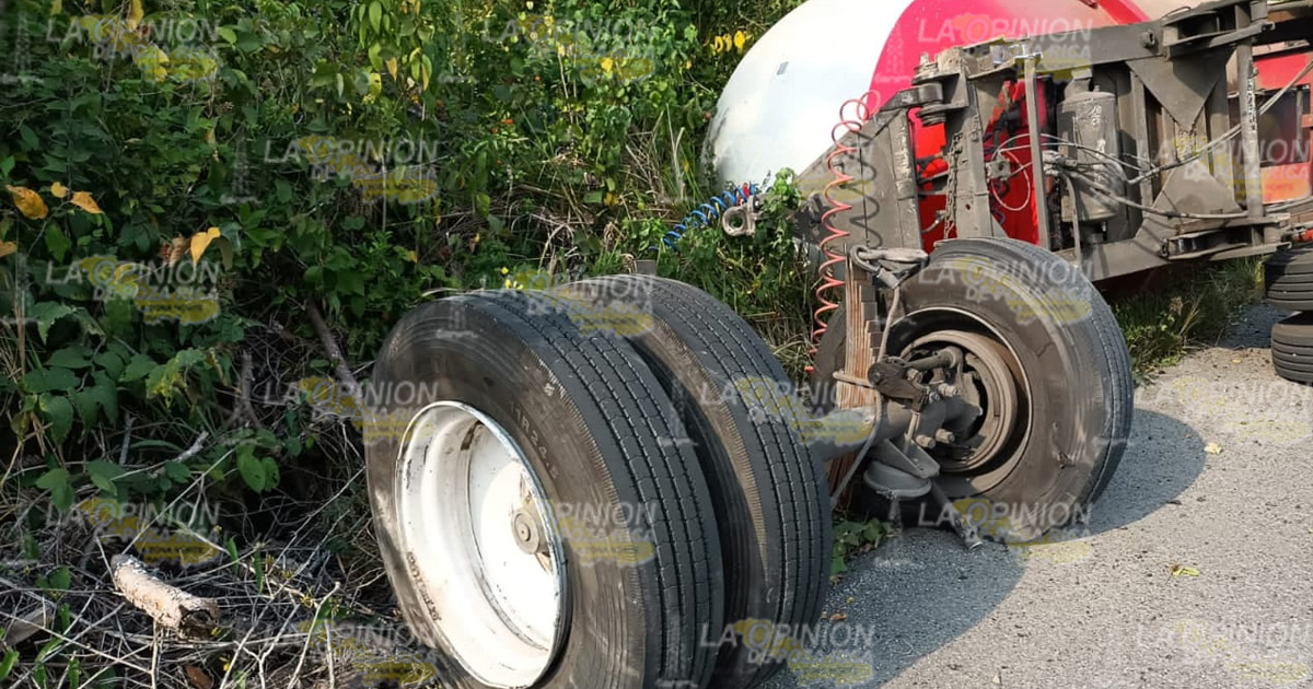 De acuerdo con los informes la pesada unidad salió de la Terminal Marítima de Gas Tomza, y se dirigía hacia la autopista México -Tuxpan, pero a la altura de la dirección mencionada, el segundo de los auto-tanques se desprendió del dolly que lo soportaba y volcó fuera de la carpeta de rodamiento y quedó recostado sobre su costado derecho.