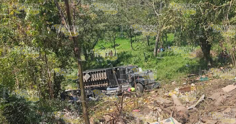 Vuelca camión torton con varias toneladas de frutas y verduras