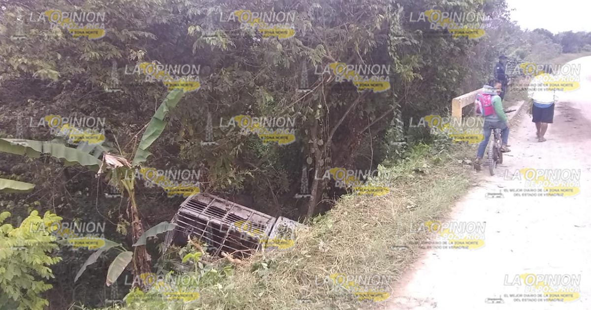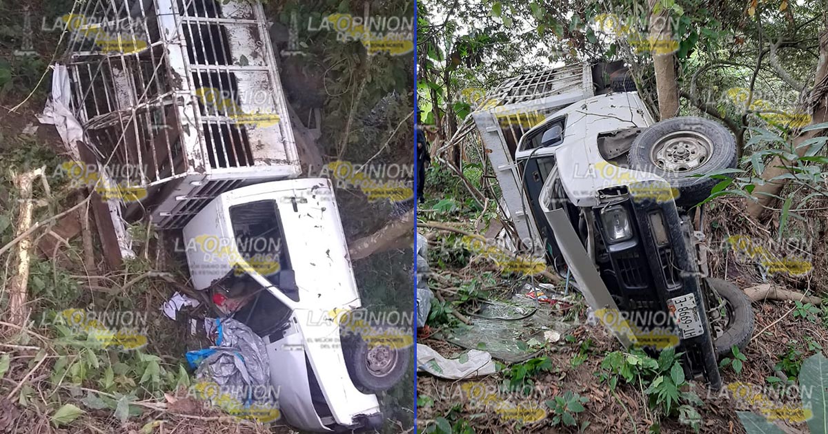 Coyutla, Ver.- Un hombre estuvo a punto de morir aplastado, luego de volcar su camioneta y caer a un barranco, iba cargado con cerdos.